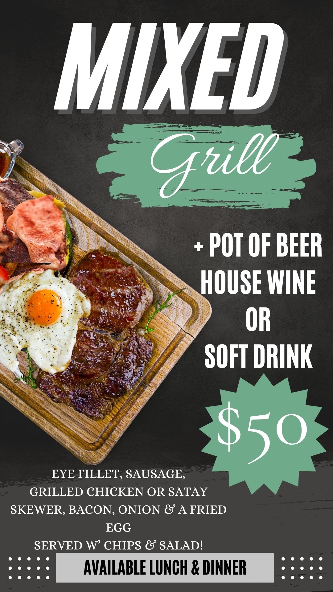 including fresh seafood, aged grain-fed steaks, pastas and other modern Australian options.